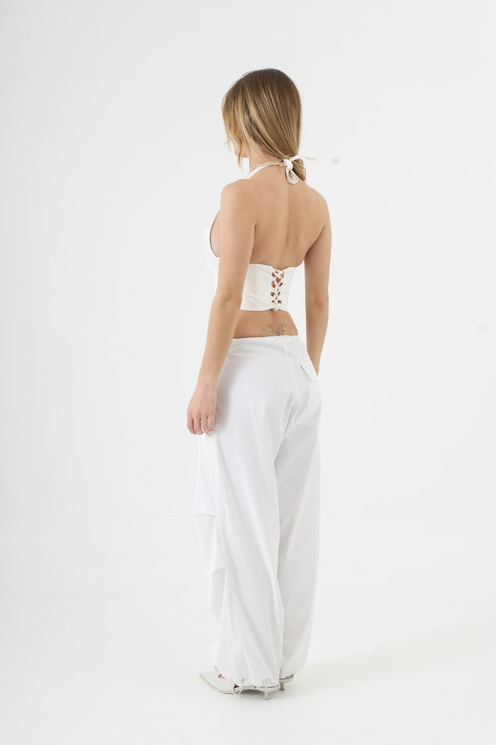 Corset confeccionado en gabardina en algodón con spandex. Con ballenas en delantero con tira regulable en la espalda.