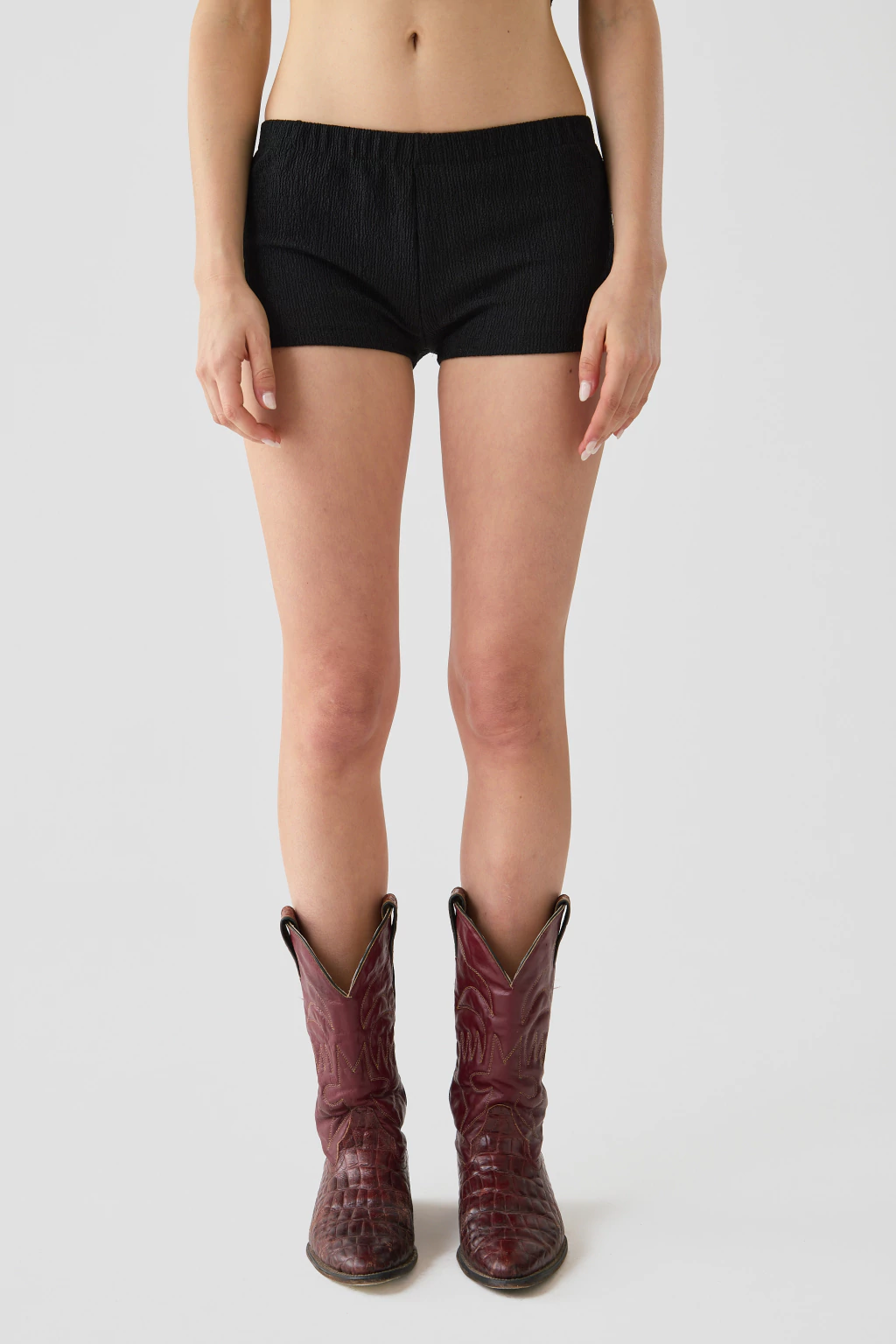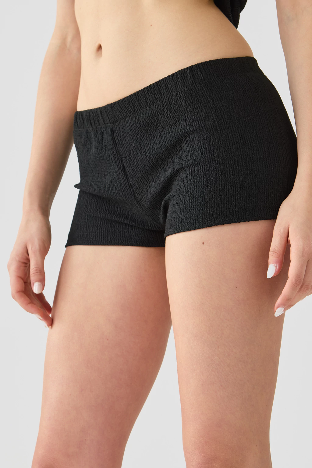 Mini short confeccionado en jersey texturado con spandex, con elástico en la cintura.
