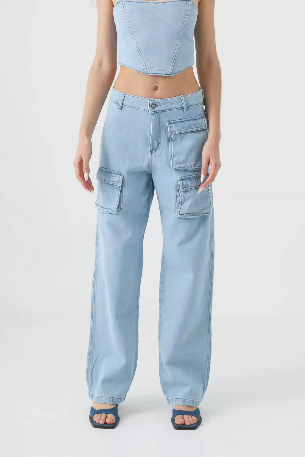 Te presentamos nuestro nuevo HIT pantalón denim cargo! En tela de jean de 100% algodón, denim rígido y suave en un lavado celeste.